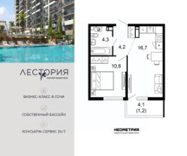 Продается квартира в жилом комплексе бизнес-класса "Лестория". В составе ЖК предусмотрена собственная аквазона площадью 473 квадратных метра с двумя подогреваемыми бассейнами, что соответствуют стандартам бизнес-класса.