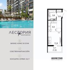 Продается квартира в жилом комплексе бизнес-класса "Лестория". В составе ЖК предусмотрена собственная аквазона площадью 473 квадратных метра с двумя подогреваемыми бассейнами, что соответствуют стандартам бизнес-класса.