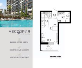 Продается квартира в жилом комплексе бизнес-класса "Лестория". В составе ЖК предусмотрена собственная аквазона площадью 473 квадратных метра с двумя подогреваемыми бассейнами, что соответствуют стандартам бизнес-класса.