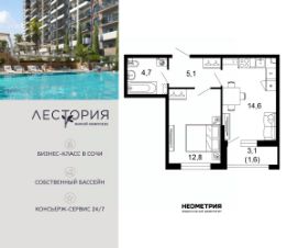 Продается квартира в жилом комплексе бизнес-класса "Лестория". В составе ЖК предусмотрена собственная аквазона площадью 473 квадратных метра с двумя подогреваемыми бассейнами, что соответствуют стандартам бизнес-класса.