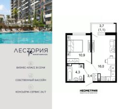 Продается квартира в жилом комплексе бизнес-класса "Лестория". В составе ЖК предусмотрена собственная аквазона площадью 473 квадратных метра с двумя подогреваемыми бассейнами, что соответствуют стандартам бизнес-класса.