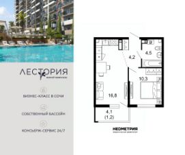 Продается квартира в жилом комплексе бизнес-класса "Лестория". В составе ЖК предусмотрена собственная аквазона площадью 473 квадратных метра с двумя подогреваемыми бассейнами, что соответствуют стандартам бизнес-класса.