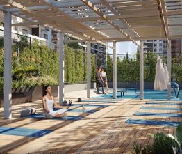 Аквазона только часть уникальной инфраструктуры "Лестории", которая включает в себя также благоустроенную территорию с пятьюдесятью функциональными зонами для прогулок, отдыха и занятий спортом, видовые террасы на крышах для отдыха, работы и встреч с друзьями, а также пространство набережной Кудепсты с шезлонгами и перголами.