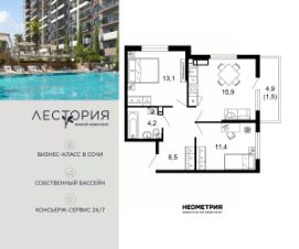 Продается квартира в жилом комплексе бизнес-класса "Лестория". В составе ЖК предусмотрена собственная аквазона площадью 473 квадратных метра с двумя подогреваемыми бассейнами, что соответствуют стандартам бизнес-класса.