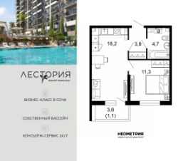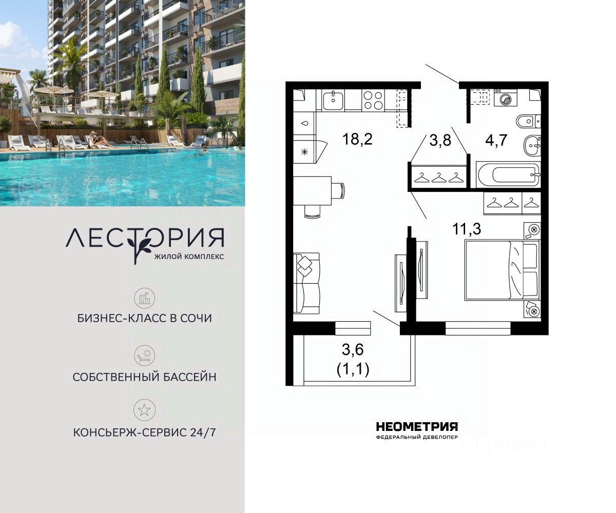 Продается квартира в жилом комплексе бизнес-класса "Лестория". В составе ЖК предусмотрена собственная аквазона площадью 473 квадратных метра с двумя подогреваемыми бассейнами, что соответствуют стандартам бизнес-класса.