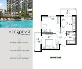 Продается квартира в жилом комплексе бизнес-класса "Лестория". В составе ЖК предусмотрена собственная аквазона площадью 473 квадратных метра с двумя подогреваемыми бассейнами, что соответствуют стандартам бизнес-класса.