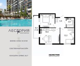 Продается квартира в жилом комплексе бизнес-класса "Лестория". В составе ЖК предусмотрена собственная аквазона площадью 473 квадратных метра с двумя подогреваемыми бассейнами, что соответствуют стандартам бизнес-класса.