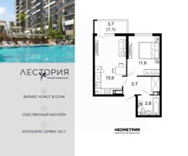 Продается квартира в жилом комплексе бизнес-класса "Лестория". В составе ЖК предусмотрена собственная аквазона площадью 473 квадратных метра с двумя подогреваемыми бассейнами, что соответствуют стандартам бизнес-класса.
