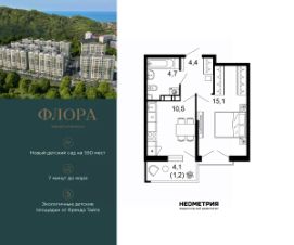 Продается квартира в ЖК "Флора" от федерального девелопера "Неометрия". Это жилой комплекс комфорт-класса в самом зеленом районе Сочи. При проектировании постарались максимально сохранить окружающую флору и фауну. Теплое море, горы, целебные источники, река, близость заповедника все это уже рядом с вами.