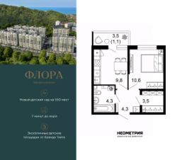 Продается квартира в ЖК "Флора" от федерального девелопера "Неометрия". Это жилой комплекс комфорт-класса в самом зеленом районе Сочи. При проектировании постарались максимально сохранить окружающую флору и фауну. Теплое море, горы, целебные источники, река, близость заповедника все это уже рядом с вами.