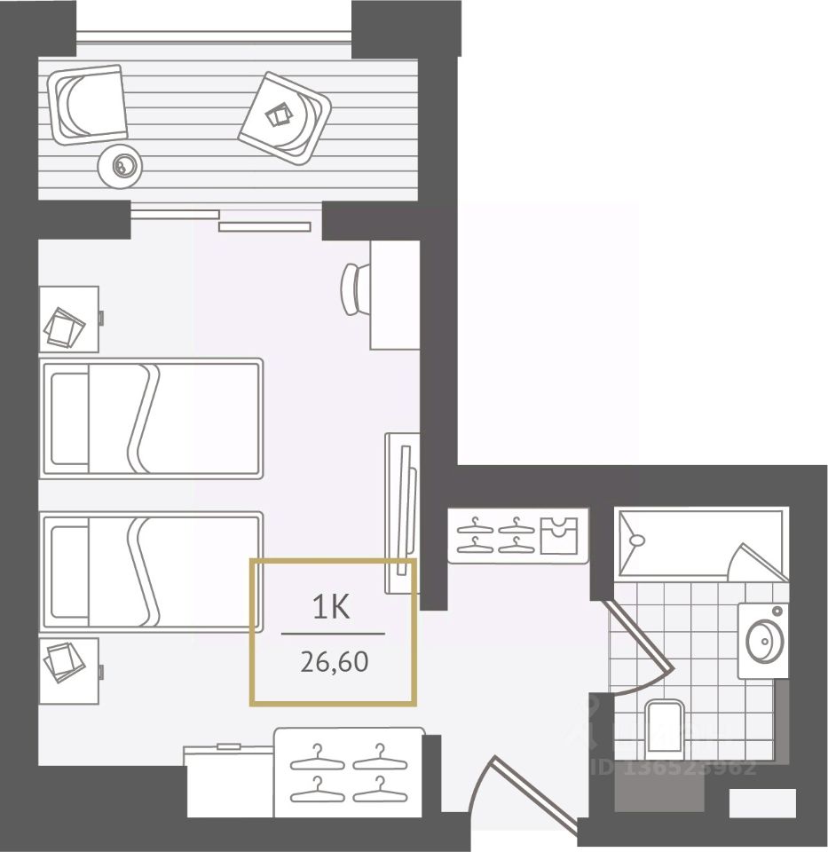 1-комн. апартаменты в Гостиничный комплекс "Нескучный сад" на 4 этаже. Общая площадь: 27.1 кв.м. Высота потолков 2.7 м.