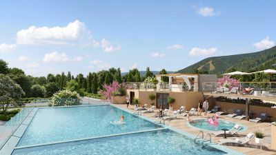 Аквазона только часть уникальной инфраструктуры "Лестории", которая включает в себя также благоустроенную территорию с пятьюдесятью функциональными зонами для прогулок, отдыха и занятий спортом, видовые террасы на крышах для отдыха, работы и встреч с друзьями, а также пространство набережной Кудепсты с шезлонгами и перголами.