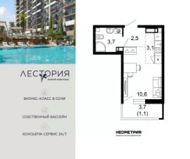Продается квартира в жилом комплексе бизнес-класса "Лестория". В составе ЖК предусмотрена собственная аквазона площадью 473 квадратных метра с двумя подогреваемыми бассейнами, что соответствуют стандартам бизнес-класса.