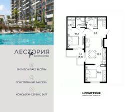 Продается квартира в жилом комплексе бизнес-класса "Лестория". В составе ЖК предусмотрена собственная аквазона площадью 473 квадратных метра с двумя подогреваемыми бассейнами, что соответствуют стандартам бизнес-класса.