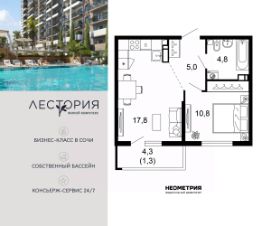 Продается квартира в жилом комплексе бизнес-класса "Лестория". В составе ЖК предусмотрена собственная аквазона площадью 473 квадратных метра с двумя подогреваемыми бассейнами, что соответствуют стандартам бизнес-класса.