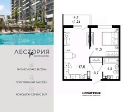 Продается квартира в жилом комплексе бизнес-класса "Лестория". В составе ЖК предусмотрена собственная аквазона площадью 473 квадратных метра с двумя подогреваемыми бассейнами, что соответствуют стандартам бизнес-класса.