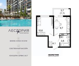 Продается квартира в жилом комплексе бизнес-класса "Лестория". В составе ЖК предусмотрена собственная аквазона площадью 473 квадратных метра с двумя подогреваемыми бассейнами, что соответствуют стандартам бизнес-класса.