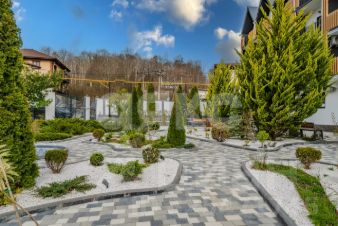 На территории SPA-центр площадью 150 м², банный комплекс и открытый подогреваемый бассейн. Закрытая детская площадка и просторный паркинг. Охраняемая территория.