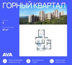 Продается 3-комнатная квартира в доме (Литер 4), срок сдачи : 3 кв. 2026, общей площадью 81 кв.м., на 12 этаже в новом современном жилом комплексе в Сочи "Горный квартал", Хостинский район. Отличный вариант для инвестиций и жизни.