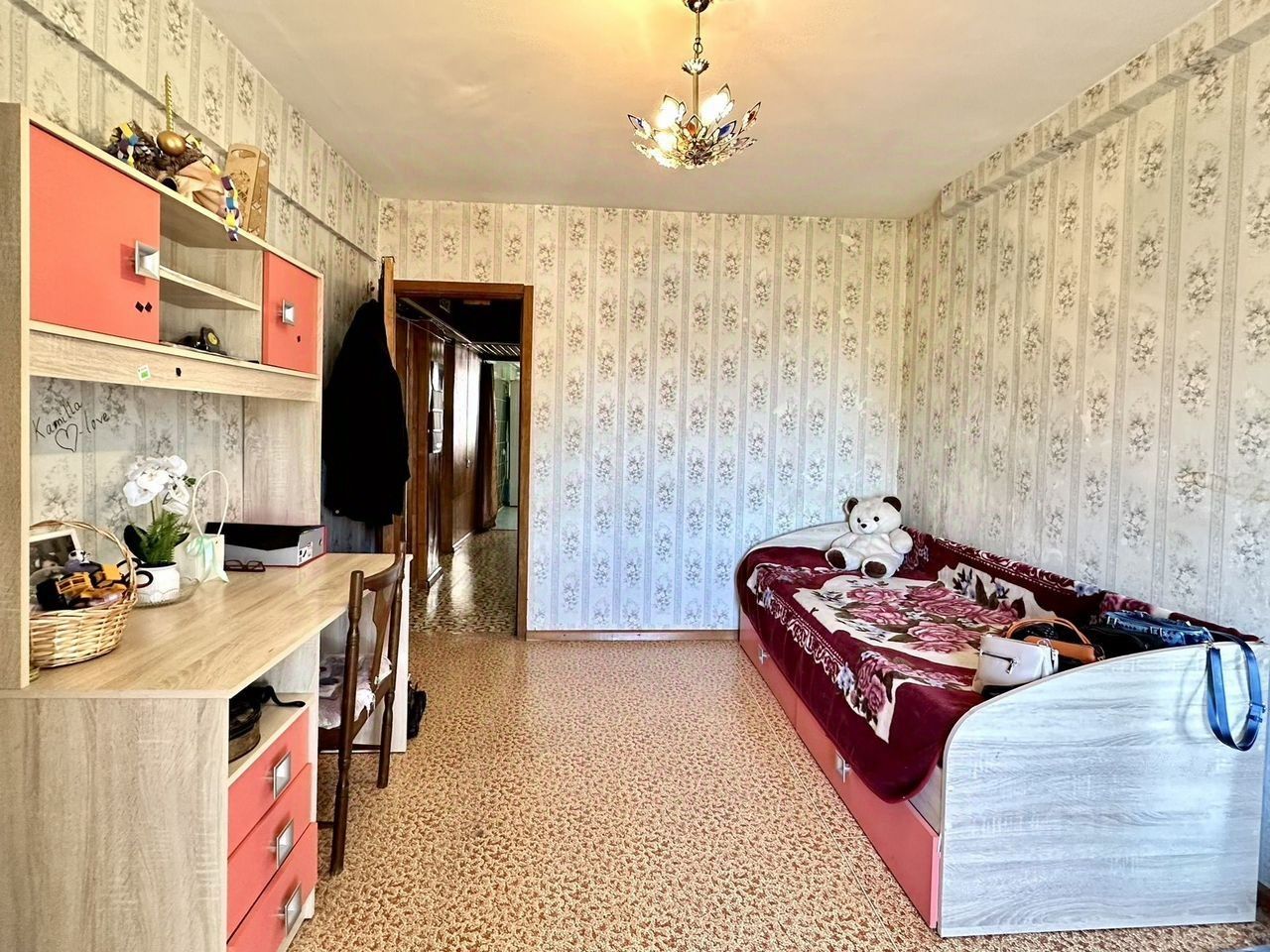 Квартира требует ремонта, чистые подъезды, ухоженная территория, есть большая парковка для машин.