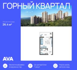 Продается студия в доме (Литер 2), срок сдачи : 3 кв. 2026, общей площадью 26.4 кв.м., на 9 этаже в новом современном жилом комплексе в Сочи "Горный квартал", Хостинский район. Отличный вариант для инвестиций и жизни.