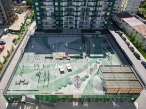 • Яркие аллеи с цветниками и кустарниками для прогулок и утренних пробежек