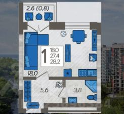 Площадь: 27,1 м², 2-й этаж.