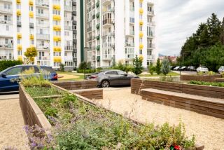 В каждом в доме колясочные, всевозможные площадки для детей и для спорта, теннисный корт, батуты, по всей территории ландшафтный дизайн с разнообразными культурными растениями и деревьями, цветочные клумбы, площадки для выгула питомцев, кафе и управляющая компания премиум-класса. 25 минут до моря (пляж Красная Поляна, Крылья Балтики, Бархатные сезоны) через орнитологический цветущий парк с лебедями. До границы с Абхазией 7 минут пешком или 2000 шагов. Где можно посетить 4 duty free.