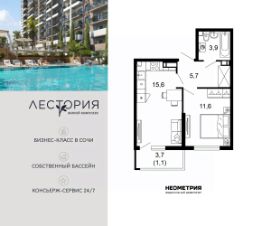 Продается квартира в жилом комплексе бизнес-класса "Лестория". В составе ЖК предусмотрена собственная аквазона площадью 473 квадратных метра с двумя подогреваемыми бассейнами, что соответствуют стандартам бизнес-класса.
