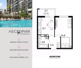 Продается квартира в жилом комплексе бизнес-класса "Лестория". В составе ЖК предусмотрена собственная аквазона площадью 473 квадратных метра с двумя подогреваемыми бассейнами, что соответствуют стандартам бизнес-класса.