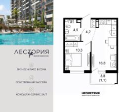 Продается квартира в жилом комплексе бизнес-класса "Лестория". В составе ЖК предусмотрена собственная аквазона площадью 473 квадратных метра с двумя подогреваемыми бассейнами, что соответствуют стандартам бизнес-класса.