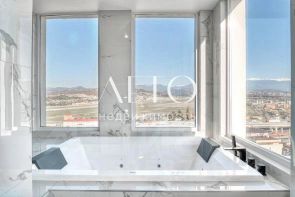 Премиальная мебель и техника, дизайнерский интерьер, панорамные окна с исключительными видами на горы и закат солнца.