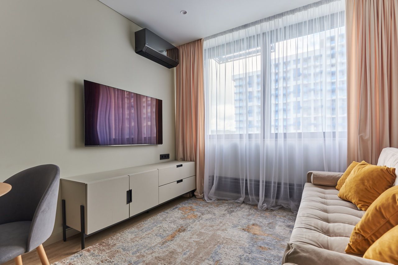 Продаётся однокомнатная квартира с видом на горы Цена = себестоимости покупки и ремонта. Есть подтверждающие документы. Квартира угловая 43 м² на 11 этаже. Светлая, с хорошим дизайнерским ремонтом — заезжай и живи. Ремонт делали для себя, не экономили! Потолки натяжные с теневым профилем. Стены оштукатурены и покрашены, двери межкомнатные и плинтуса Волховец в цвет стен. На полу кварц винил. В прихожей и с/у керамогранит. Вся корпусная мебель из австрийского ЛДСП Egger, каменная столешница на кухне и в с/у. В кухне встроенная техника: холодильник, СВЧ, Духовой шкаф, посудомоечная машина, варочная поверхность. В с/у стиральная машина, большой шкаф для хранения и шкаф над инсталляцией для бытовой химии. В гостиной раскладной диван, тв тумба и телевизор. В спальне двуспальная кровать (спальное место 180*200 см), кресло кровать, шкаф и комод. В комнатах заменены радиаторы на дизайнерские черные и установлены кондиционеры. Теплый пол в прихожей и с/у. А также теплая стена вместо полотенцесушителя. Рядом всё нужное: детский сад и школа видна из окна, озон прямо в доме, аптека, несколько кафе, магазин, парковка. И все это в 2-5 минутах ходьбы! Тихий район, чистый воздух. Отличная транспортная доступность! Звони, покажу в удобное время!