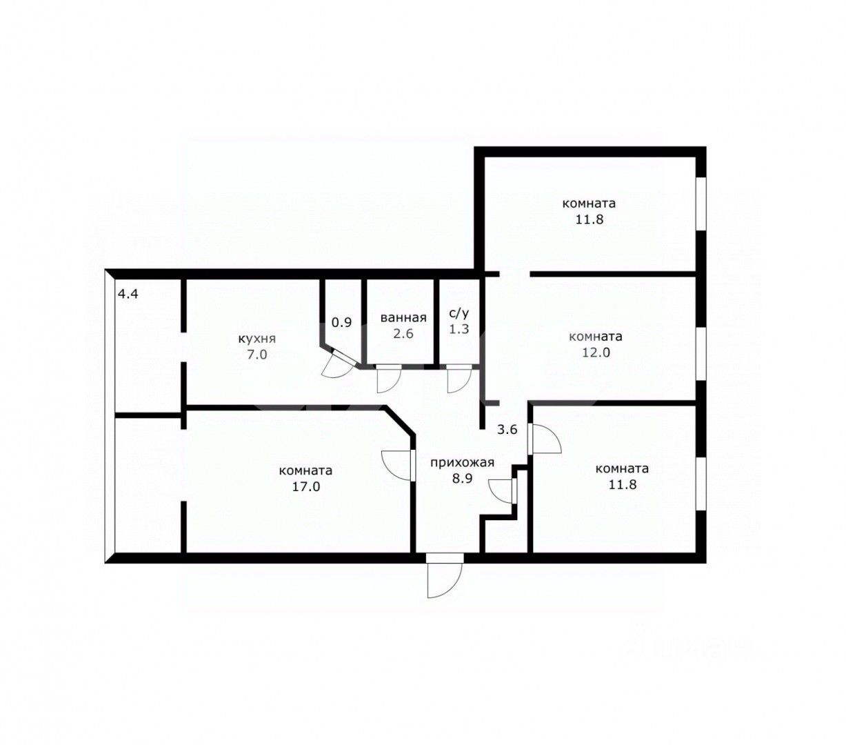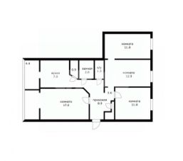 Комнаты площадью 17+11,8+12+11,2, коридор 12,5 кв.м