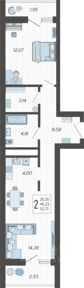 Продаётся 2-комнатная квартира в сданном доме (Корпус 9), срок сдачи: IV-кв. 2023, общей площадью 51.5 кв.м., на 8 этаже. Жилой комлекс "Кислород" представляет комплексную застройку, состоящую из 20-ти этажных монолитных домов.