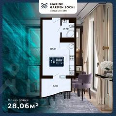 Выгодное вложение, пользуется спросом круглый год. Запланировано развитие микрорайона - строительство полей для гольфа и морского рекреационного комплекса Коста-Марина. Рядом находятся такие достопримечательности как Тисо-самшитовая роща и Новалишенское ущелье.