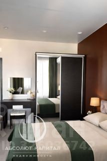 Полная меблировка: кровать King-size, раскладной диван, системы хранения.