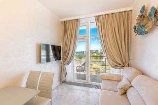 В квартире выполнен дизайнерский ремонт, мебель производства Италии, встроенная техника производства Германии, две спальни, кухня-гостиная и терраса с великолепным видом на море.