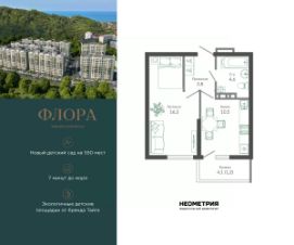 Продается квартира в ЖК "Флора" от федерального девелопера "Неометрия". Это жилой комплекс комфорт-класса в самом зеленом районе Сочи. При проектировании постарались максимально сохранить окружающую флору и фауну. Теплое море, горы, целебные источники, река, близость заповедника все это уже рядом с вами.