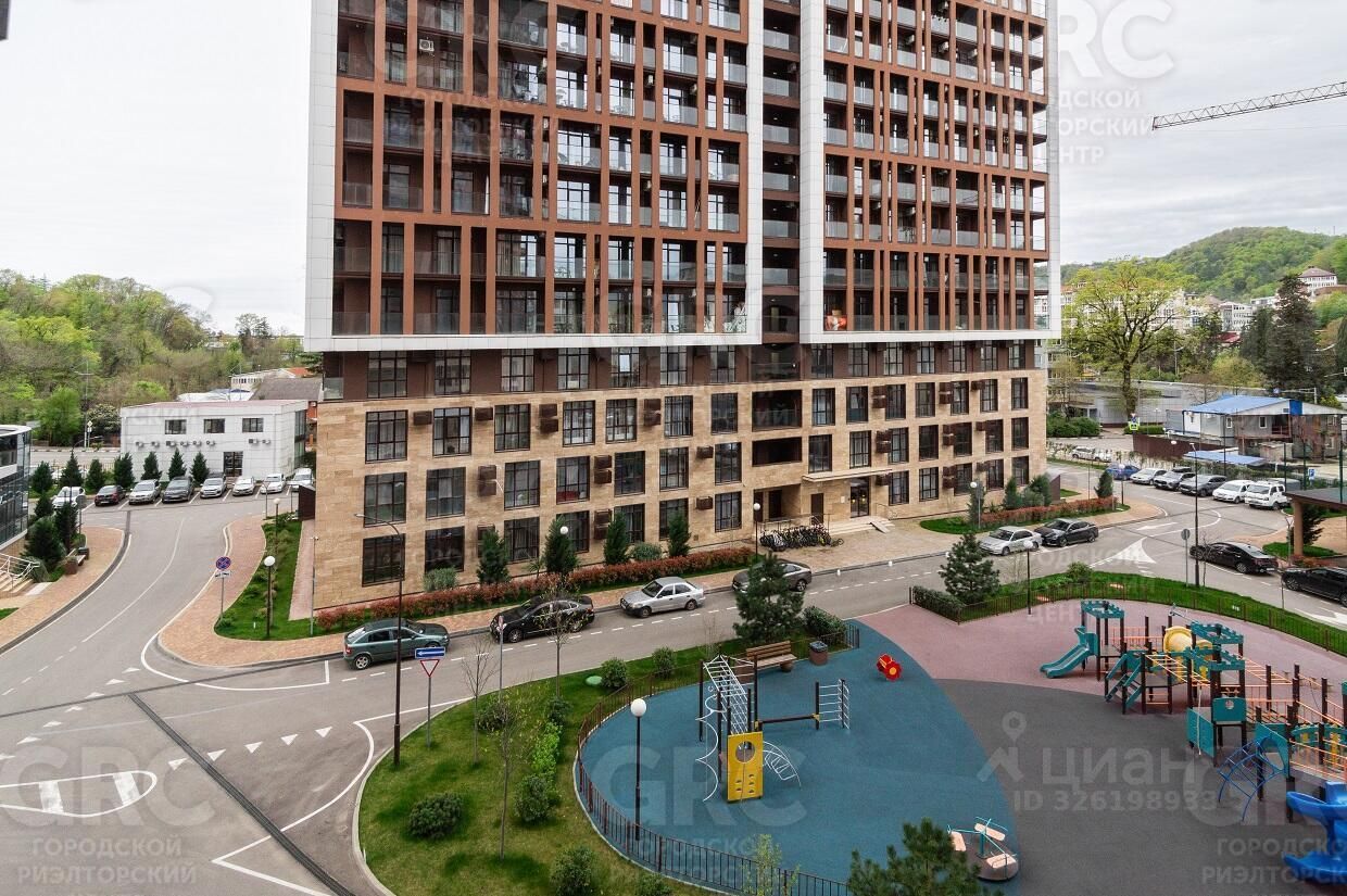 Квартира-студия с прекрасным видом на горы ждет вас в современном жилом комплексе на Батумском шоссе в поселке городского типа Дагомыс, Сочи. Комплекс находится рядом с национальным парком, предоставляя возможность наслаждаться чистым воздухом и природой, а также предлагает открытый подогреваемый бассейн и двор без машин для вашего комфорта и безопасности.