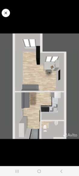 Уютная , светлая квартира с высокими потолками- 3м. для семейной пары. Комната площадью 18кв.м. оборудована спальными местами и 2 письменными столами для работы и обучения. Окна спальни выходят на солнечную сторону, что дает дополнительное освещение и тепло. Кухня- гостиная- 7 кв.м., в ней размещены комфортный диван и стол, удобно складывающийся при необходимости. В совместном узле расположены: котел отопления и стиральная машина. Полноценная прихожая оборудована вместительным шкафом -купе. Новым владельцам мебель и техника частично останется в квартире.
