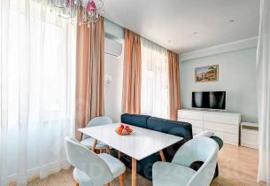 Сама квартира продается полностью с ремонтом, с мебелью и техникой. Можно заехать сразу и жить. Сделан качественный, дизайнерский ремонт. Квартира чистая, светлая, аккуратная, в аренду не сдавали.