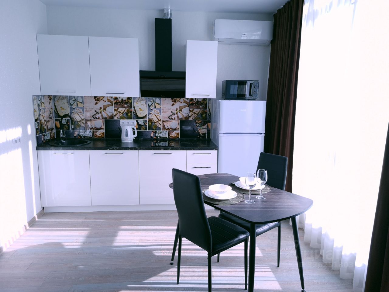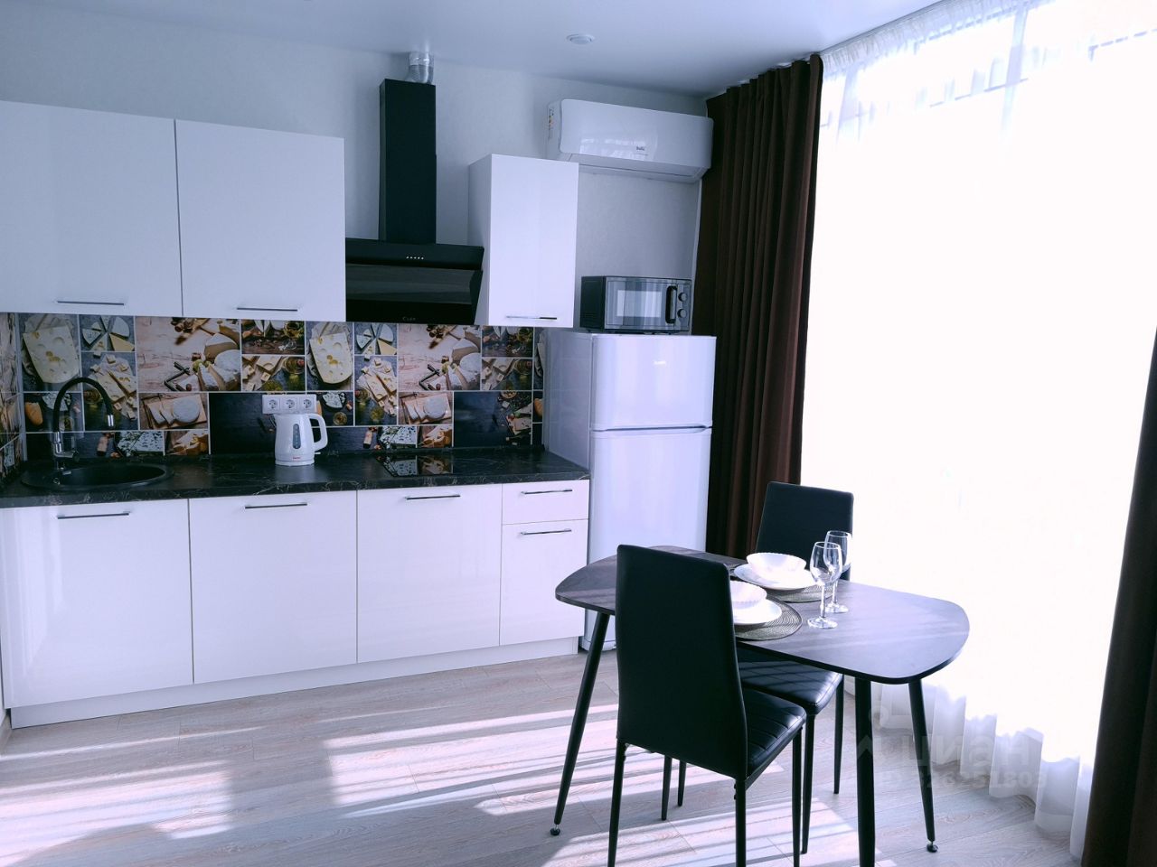 Продается уютная студия в Сочи на 22-м этаже современного 26-этажного монолитного дома, построенного в 2018 году. Высокие потолки (3 м) и большие окна, выходящие во двор, создают ощущение простора и света.