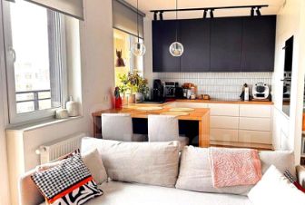 - Кухня-гостиная: светлая и просторная, с большим раскладывающимся диваном