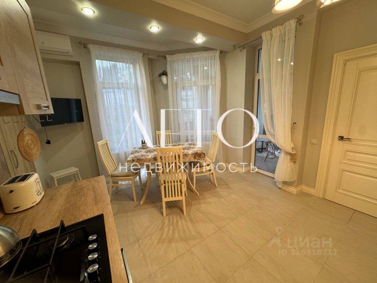 Квартира находится в прекрасном жилом комплексе, в окруженнии санаториев и в шаговой доступности от пляжа. Развита инфраструктура: рядом магазины, кафе, рестораны и остановки общественного транспорта.