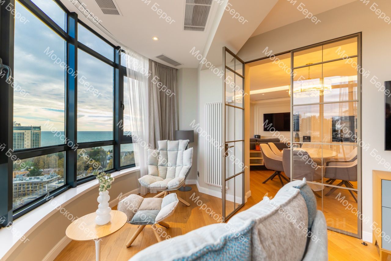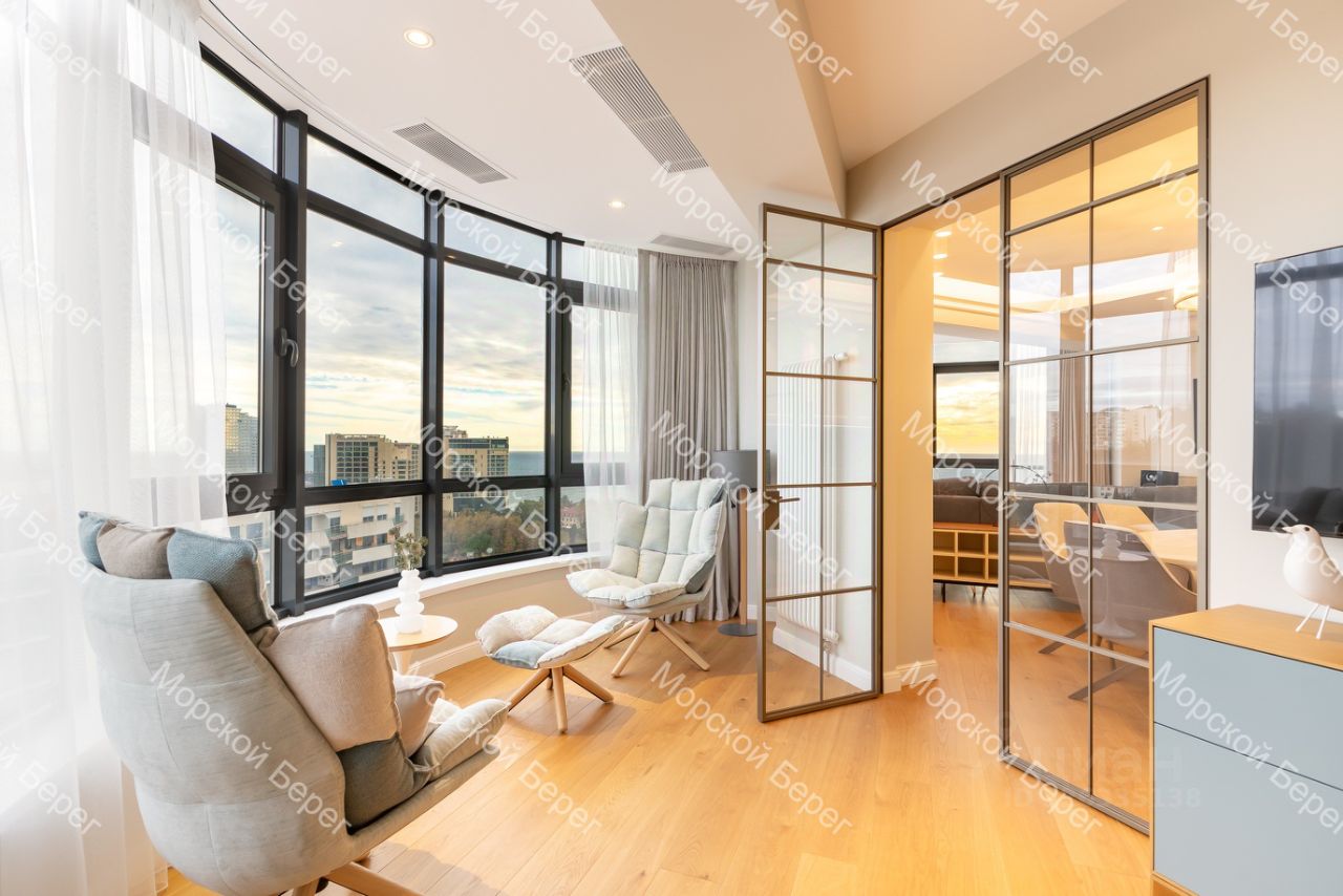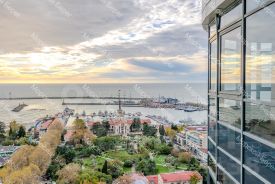 Функциональная планировка включает просторную кухню-гостиную, две изолированные спальни, гардеробную и два санузла. Панорамное остекление и высокий этаж обеспечивают прямой, ничем не перекрываемый вид на Чёрное море и Морской порт из всех окон. Квартира светлая, видовая и обладает высокими характеристиками как для личного проживания, так и для инвестиционных целей.