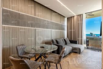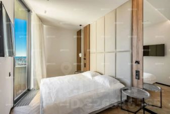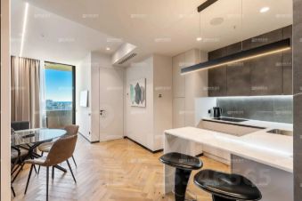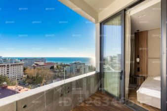 Площадь 57 м² грамотно разделена на изолированную спальню, просторную кухню-гостиную и функциональную гардеробную. Из больших окон и с балкона открывается завораживающий вид на морскую акваторию, где горизонт словно растворяется в бескрайней синеве.