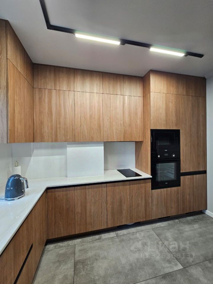 Полная комплектация: встроенная кухня с индукционной панелью и духовым шкафом, посудомоечная и стиральная машины, холодильник, СВЧ, кондиционер