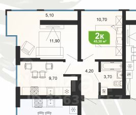 2 комнаты и кухня. 2 стояка в квартире. Можно расположить кухню как удобно.
