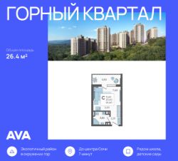 В продаже студия площадью 26.4, расположенная Литер 1 жилого комплекса комфорт+ класса "Горный квартал". Комплекс от девелопера AVA находится в Сочи, Хостинского района, в 15 минутах езды от центра города. Отличная транспортная доступность: Остановка маршрутных такси - 5 минут пешком, Барановский виадук - 10 минут на авто, Министерские озера - 2 минуты пешком, Гимназии, детские сады, фитнес-центры, супермаркеты, кинотеатр - 5-10 минут на авто, Ж/Д и автовокзал - 15-20 минут на авто, Адлер - 30 минут на авто, Аэропорт - 45 минут на авто. Аккуратный облик домов Жилой комплекс состоит из пяти корпусов высотой от 10 до 16 этажей. Сдержанные фасады в бежево-серых оттенках выглядят аккуратно и гармонируют с природным окружением, а открытые балконы добавляют облику домов легкости. Контейнеры под кондиционеры встроены в фасады и практически незаметны, благодаря чему дома сохраняют опрятный внешний вид. Комплекс расположен на склоне горы, поэтому из окон квартир на верхних этажах открываются отличные панорамные виды на лес, озеро и город: чем выше этаж, тем выразительнее пейзаж. Двор, где есть место для всех На внутренней территории комплекса всем будет приятно и интересно проводить время в любой сезон. Здесь есть беседки и гамаки под теневыми навесами, что особенно удобно для отдыха в жаркие или дождливые дни. Для активных жителей предусмотрены спортивные площадки и уличные тренажеры, для детей - игровые площадки из натуральных материалов, а для семей и компаний - зона барбекю. Особое преимущество - кинотеатр под открытым небом: формат редкий для жилых комплексов и особенно ценный для совместного семейного досуга прямо рядом с домом. Во всем дворе - ландшафтное озеленение: высажены разнообразные деревья и кустарники, южные цветы и газоны. Природное окружение и идеальная экология Локация особенно понравится тем, кто любит природу и ведет активный образ жизни. Всего в 2 минутах ходьбы находится Нижнее Министерское озеро - отличное место для прогулок и отдыха. Поблизости расположены природные достопримечательности южного побережья, включая Черепашье озеро и дольмены, куда интересно ходить в походы или выезжать на выходные. До общественных и санаторных пляжей можно добраться за 20 минут на автомобиле. Благодаря хвойному лесу и мягкому морскому бризу здесь всегда чистый воздух, а ночами видно звездное небо, что подчеркивает горный характер места и создает редкое ощущение тишины и уюта для Сочи. Дополнительные преимущества Видовые квартиры с окнами на три стороны света и семейные форматы с тремя спальнями, двумя ванными и отдельной кухней; Наземный паркинг для жителей и гостей на 815 машиномест, На первых этажах домов работают магазины, рестораны и салоны красоты, к которым можно спуститься на лифте, Комфортно не только отдыхать, но и полноценно жить всей семьей: гимназии в 10 минутах езды, удобная дорогая до города, магазины и сервисы поблизости.
